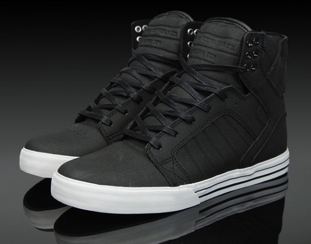 The second shoe is a Supra TUF Muska Skytop featuring black waxed canvas and a white sole. These shoes are simple and chic. You can get both colorways now at Caliroots. The black canvas version is 1.299 SEK (about $215 USD) and the white sneakers are 1.199 SEK (about $198 USD). Supra is really staking a claim in the sneaker industry with some fantastic choices as of late. Via Kicks On Fire.